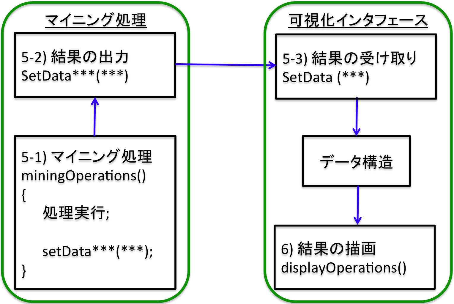 - 処理結果は、setData***() メソッドを利用して、可視化インタフェースツールに渡します。